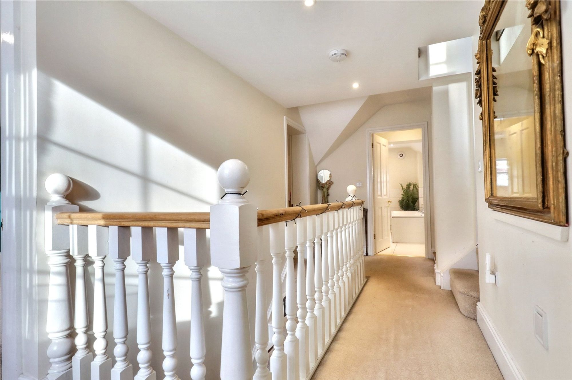 The first floor gallery landing leads to three generously proportioned bedrooms and includes a superb master bedroom with stylishly appointed en-suite shower room. The luxury family bathroom is beautifully appointed and features both bath and double walk in shower cubicle. The second floor landing displays a wealth of exposed timbers and leads to two further double bedrooms.
