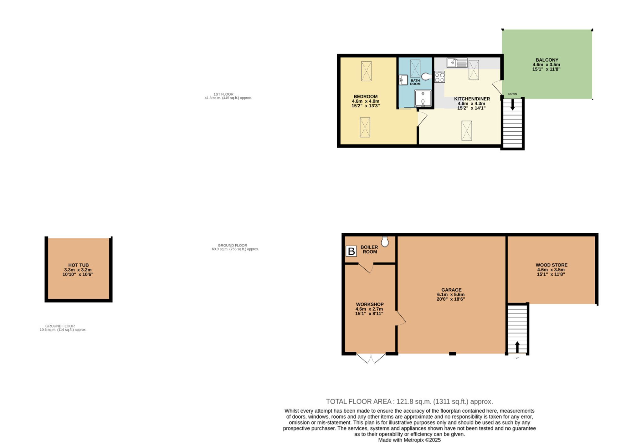 The annexe forms part of a larger structure below that includes a spacious garage/carport, workshop, wood store and boiler room, providing excellent storage and practical workspace.