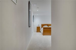 Descending from the main living space, the lower ground floor reveals two further well-proportioned bedrooms, a stunning second bathroom of Porcelanosa distinction, and a useful utility room, all enhanced by automatic ambient lighting and practical design.