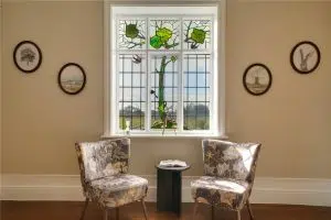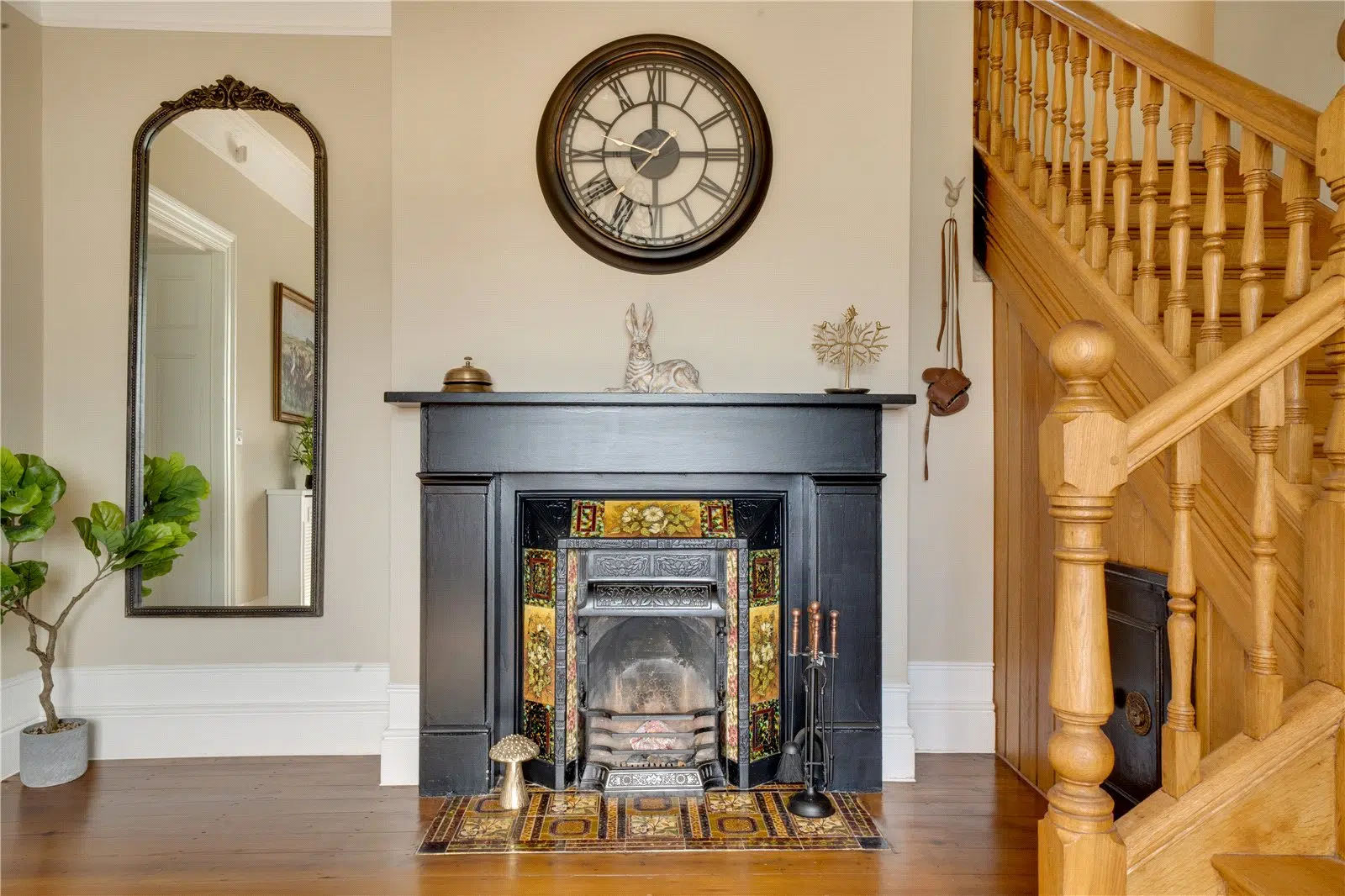 Step into the grand entrance hall, where original features such as the traditional staircase and a striking stained-glass window are complemented by elegant modern décor. Practicality meets style in the utility and boot room, complete with laundry facilities and a WC, ideal for drying dogs and storing walking gear after a day outdoors.