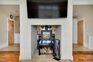 For fun-filled gatherings, the impressive games room is a highlight. Here, a full-size snooker table, arcade machine with 9,000 games, dartboard, and Smart TV are accompanied by a wood burner and double doors that open to the patio. State-of-the-art entertainment flows throughout the property with Bluetooth surround sound zones and Smart TVs in every room, including full Sky access.