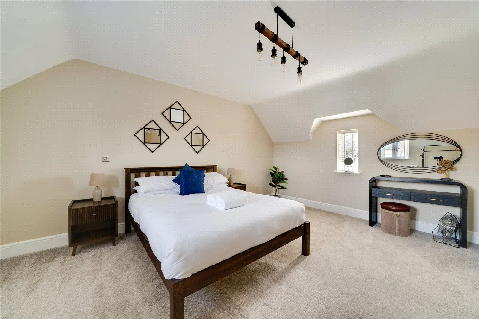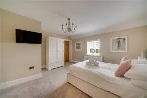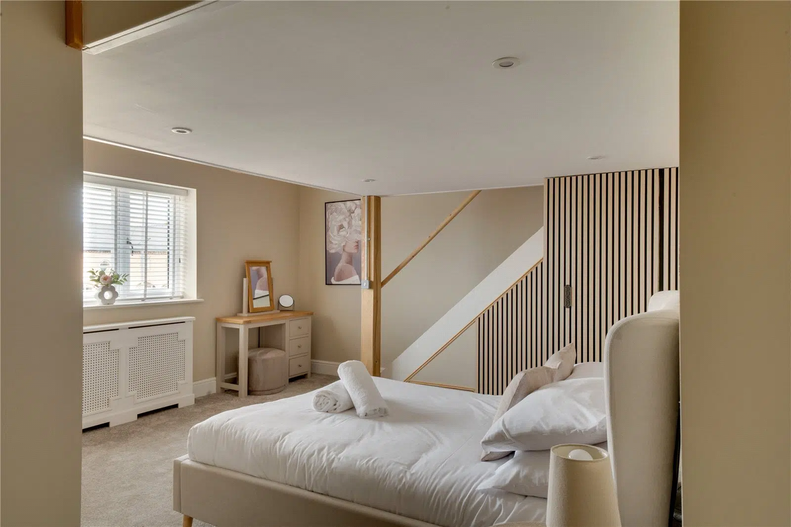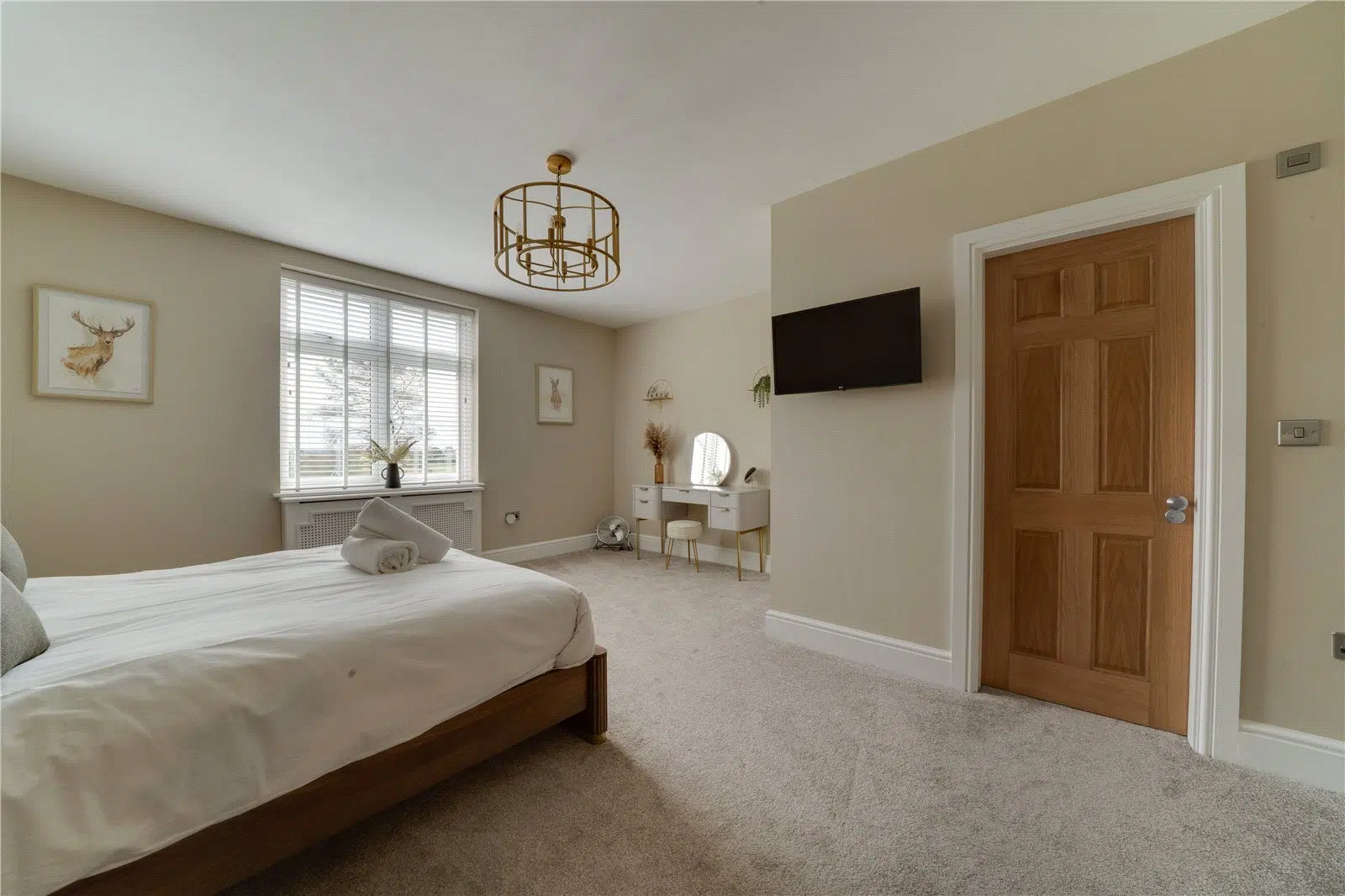 The impressive accommodation continues in style with seven beautifully appointed bedrooms. A private king-size with en-suite is accessed via the dining room staircase, while the remaining six—each with countryside views and plush finishes—are reached from the main staircase. Most enjoy en-suite facilities, while the family bedroom features a mezzanine twin room, and one twin is served by a luxurious family bathroom.