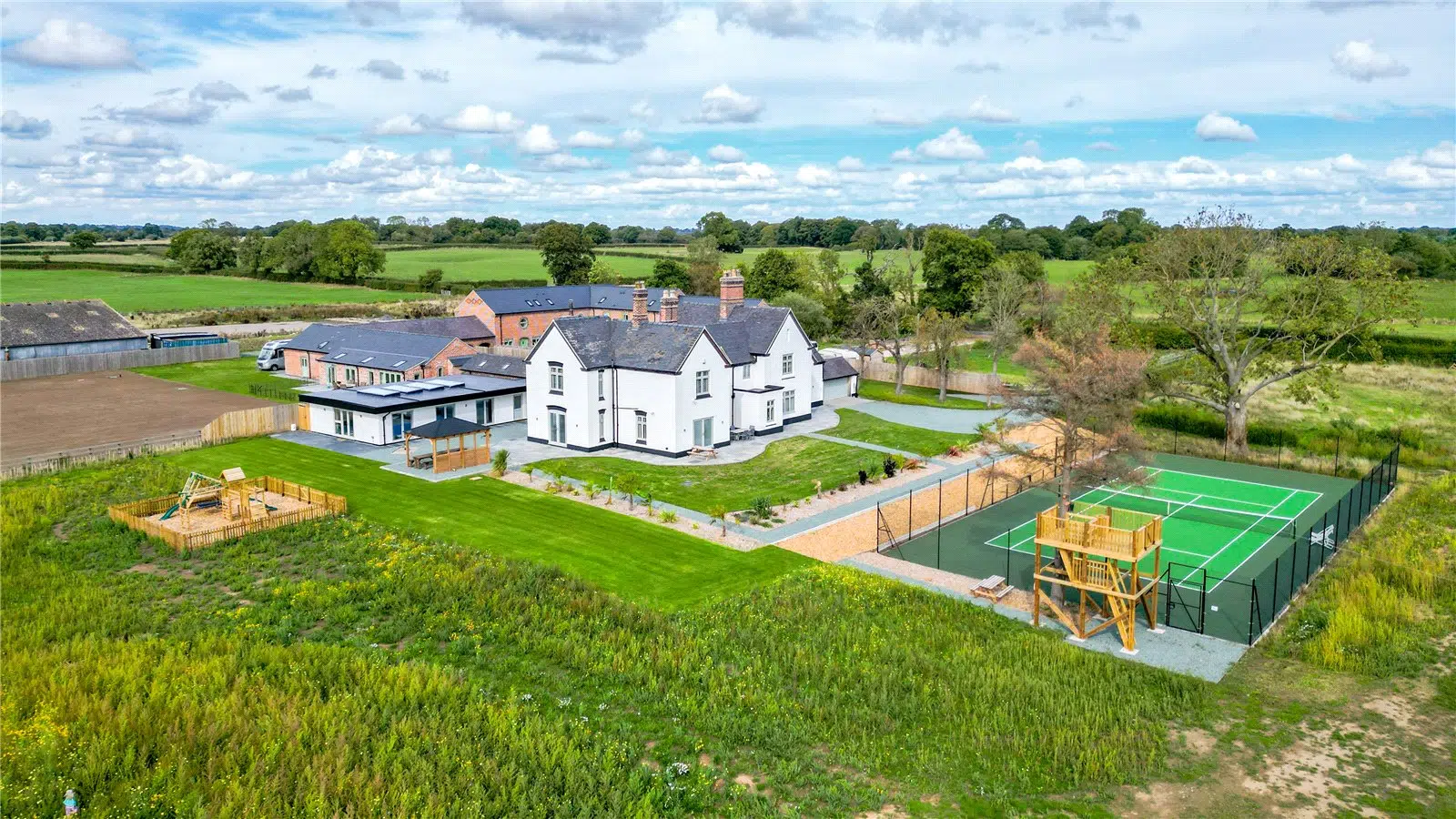 This exceptional seven bedroom country residence, located just north of Shrewsbury, occupies approx 5 acres in a beautiful rural setting in the highly desirable county of Shropshire. The property has undergone an extensive and thoughtful renovation, resulting in an impressive home with striking white render, which perfectly contrasts against the new roof and sits proudly at the end of the long, private drive.